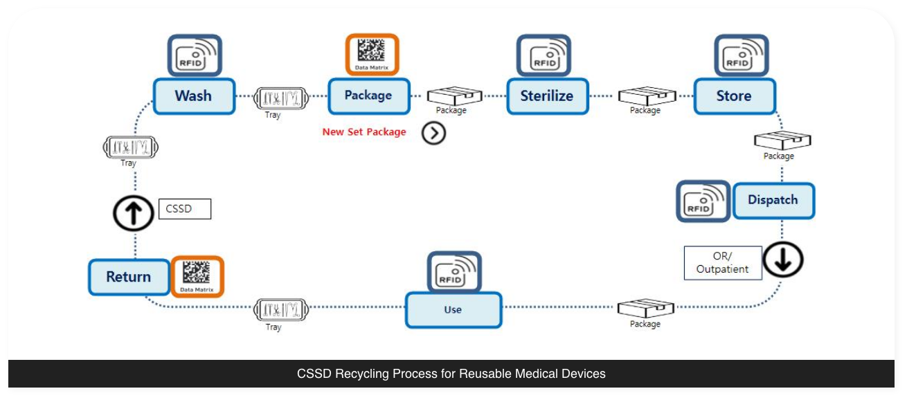 In order to accurately recognize individual medical devices at each stage,'Dr.Tracking' utilizes a mixture of RFID and Data Matrix technologies.